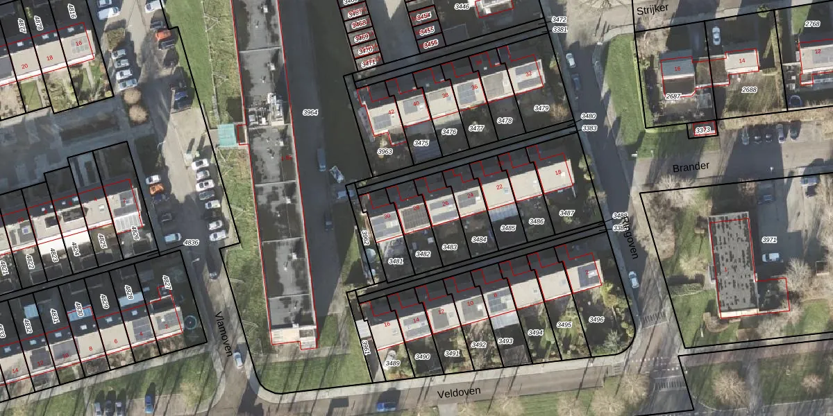 Gebruik de zoekbalk of klik op een perceel voor informatie over de adressen binnen dit perceel.