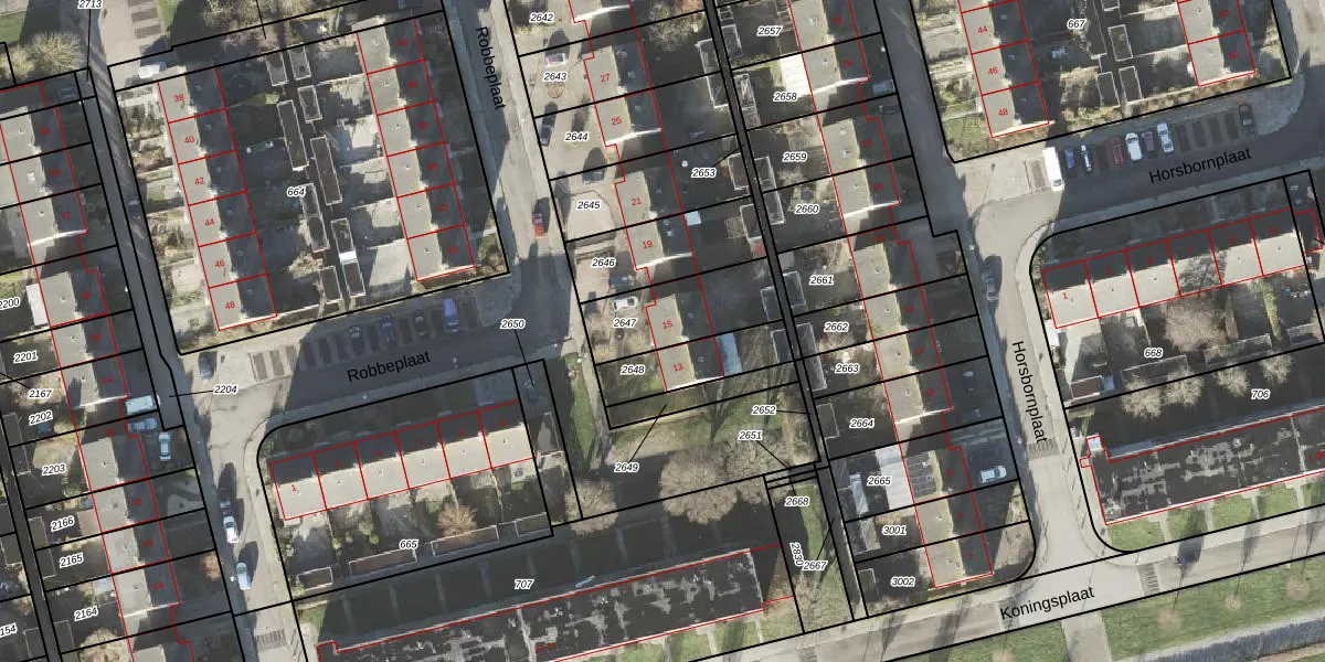 Het perceel waarop Robbeplaat 15 staat heeft een oppervlakte van 279 m². Dit is een middelgroot perceel. De perceeloppervlakte wordt geregistreerd door het Kadaster. Gedetailleerde informatie over de maten van dit perceel kunt u vinden in het rapport Kadastrale kaart met maatvoering van Robbeplaat 15.