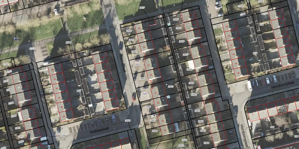 Gebruik de zoekbalk of klik op een perceel voor informatie over de adressen binnen dit perceel.