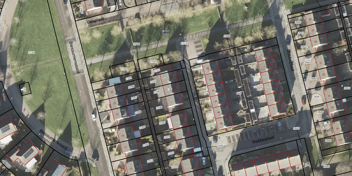 Het perceel waarop Robbeplaat 34 staat heeft een oppervlakte van 149 m². Dit is een middelgroot perceel. De perceeloppervlakte wordt geregistreerd door het Kadaster. Gedetailleerde informatie over de maten van dit perceel kunt u vinden in het rapport Kadastrale kaart met maatvoering van Robbeplaat 34.
