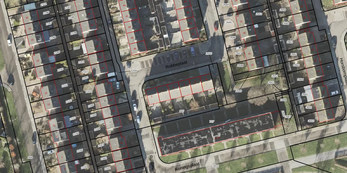 Het perceel waarop Robbeplaat 5 staat heeft een oppervlakte van 1047 m². Dit is een zeer groot perceel. De perceeloppervlakte wordt geregistreerd door het Kadaster. Gedetailleerde informatie over de maten van dit perceel kunt u vinden in het rapport Kadastrale kaart met maatvoering van Robbeplaat 5.