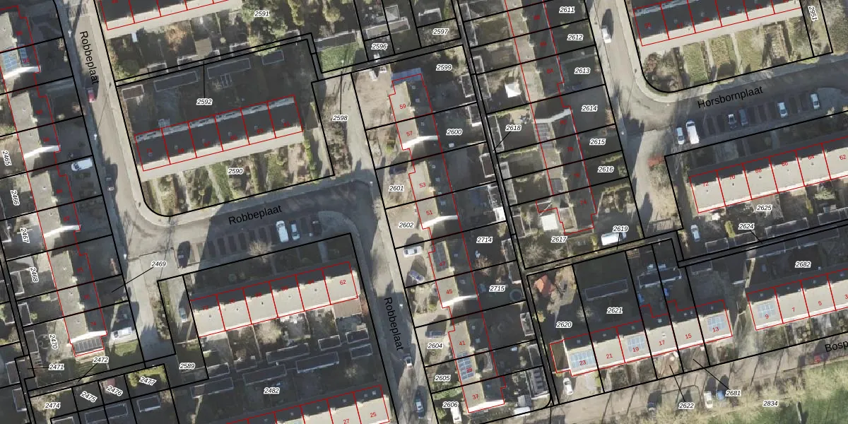 Gebruik de zoekbalk of klik op een perceel voor informatie over de adressen binnen dit perceel.