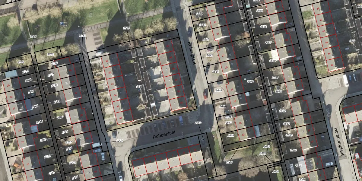 Het perceel waarop Robbeplaat 52 staat heeft een oppervlakte van 2100 m². Dit is een zeer groot perceel. De perceeloppervlakte wordt geregistreerd door het Kadaster. Gedetailleerde informatie over de maten van dit perceel kunt u vinden in het rapport Kadastrale kaart met maatvoering van Robbeplaat 52.