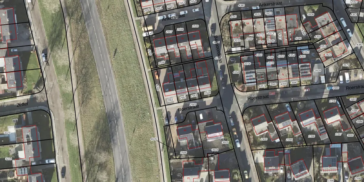 Gebruik de zoekbalk of klik op een perceel voor informatie over de adressen binnen dit perceel.