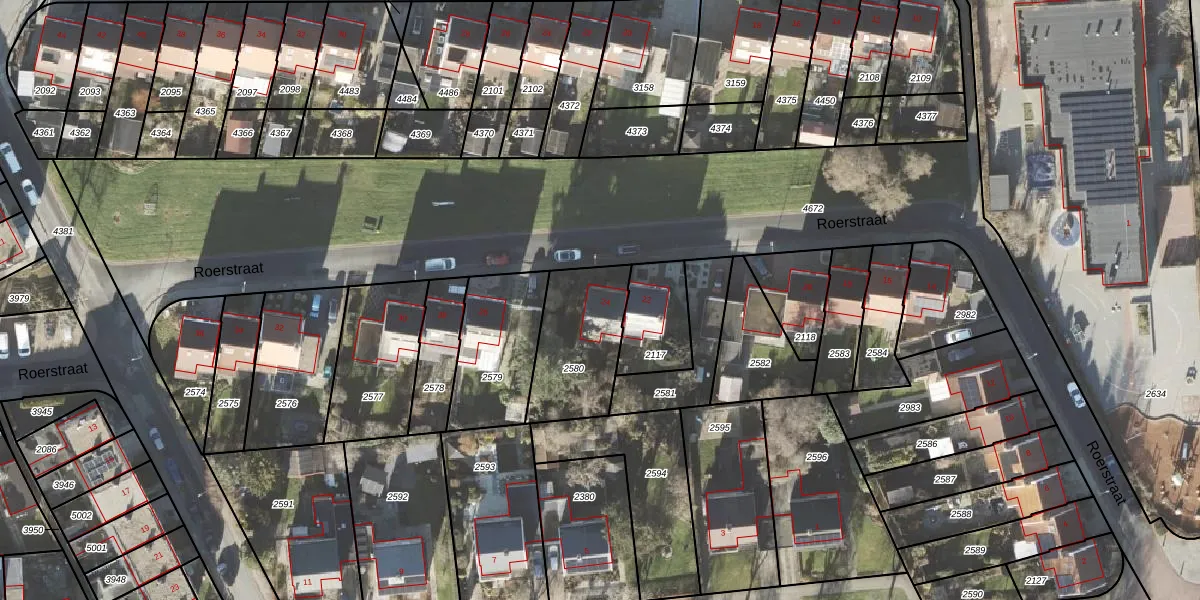 Het perceel waarop Roerstraat 24 staat heeft een oppervlakte van 340 m². Dit is een groot perceel. De perceeloppervlakte wordt geregistreerd door het Kadaster. Gedetailleerde informatie over de maten van dit perceel kunt u vinden in het rapport Kadastrale kaart met maatvoering van Roerstraat 24.