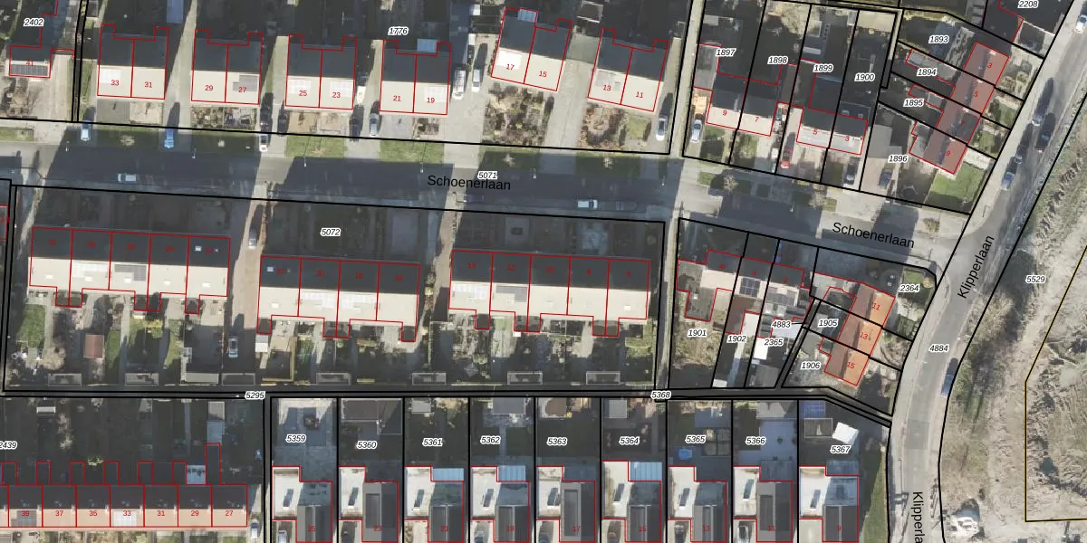 Het perceel waarop Schoenerlaan 10 staat heeft een oppervlakte van 4105 m². Dit is een zeer groot perceel. De perceeloppervlakte wordt geregistreerd door het Kadaster. Gedetailleerde informatie over de maten van dit perceel kunt u vinden in het rapport Kadastrale kaart met maatvoering van Schoenerlaan 10.
