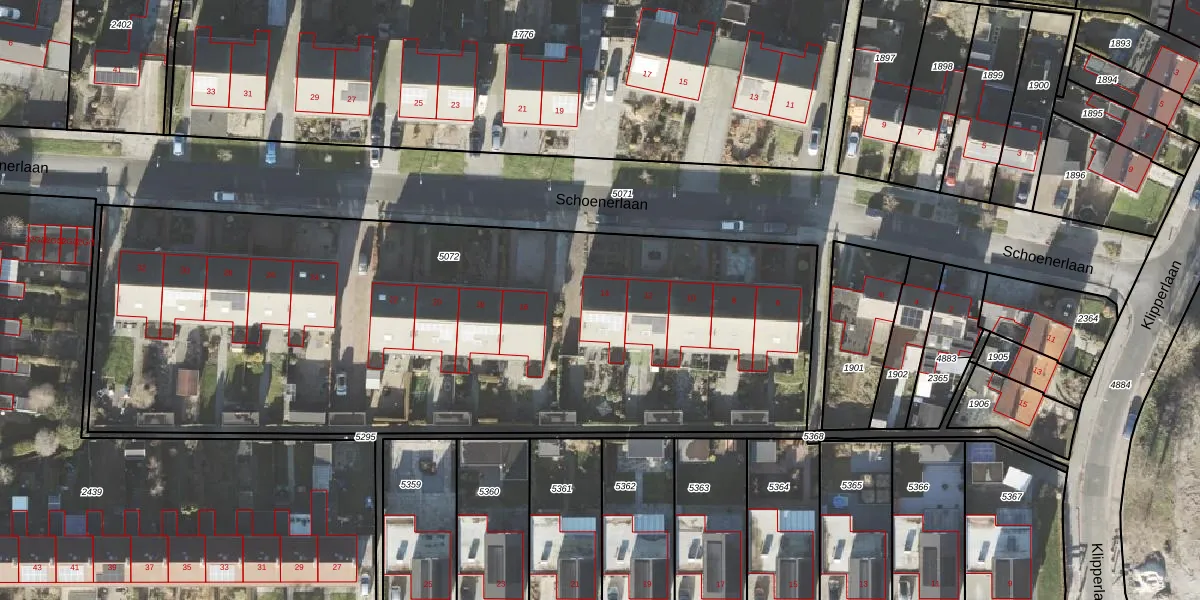 Het perceel waarop Schoenerlaan 14 staat heeft een oppervlakte van 4105 m². Dit is een zeer groot perceel. De perceeloppervlakte wordt geregistreerd door het Kadaster. Gedetailleerde informatie over de maten van dit perceel kunt u vinden in het rapport Kadastrale kaart met maatvoering van Schoenerlaan 14.