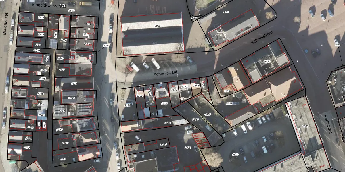 Het perceel waarop Schoolstraat 44 staat heeft een oppervlakte van 82 m². Dit is een klein perceel. De perceeloppervlakte wordt geregistreerd door het Kadaster. Gedetailleerde informatie over de maten van dit perceel kunt u vinden in het rapport Kadastrale kaart met maatvoering van Schoolstraat 44.