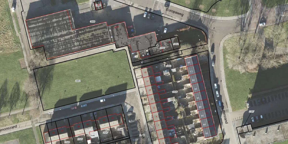 Het perceel waarop Simonszand 19 staat heeft een oppervlakte van 3255 m². Dit is een zeer groot perceel. De perceeloppervlakte wordt geregistreerd door het Kadaster. Gedetailleerde informatie over de maten van dit perceel kunt u vinden in het rapport Kadastrale kaart met maatvoering van Simonszand 19.