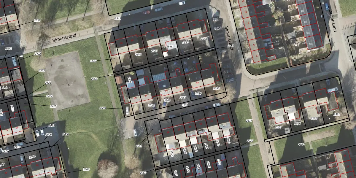 Het perceel waarop Simonszand 40 staat heeft een oppervlakte van 212 m². Dit is een middelgroot perceel. De perceeloppervlakte wordt geregistreerd door het Kadaster. Gedetailleerde informatie over de maten van dit perceel kunt u vinden in het rapport Kadastrale kaart met maatvoering van Simonszand 40.