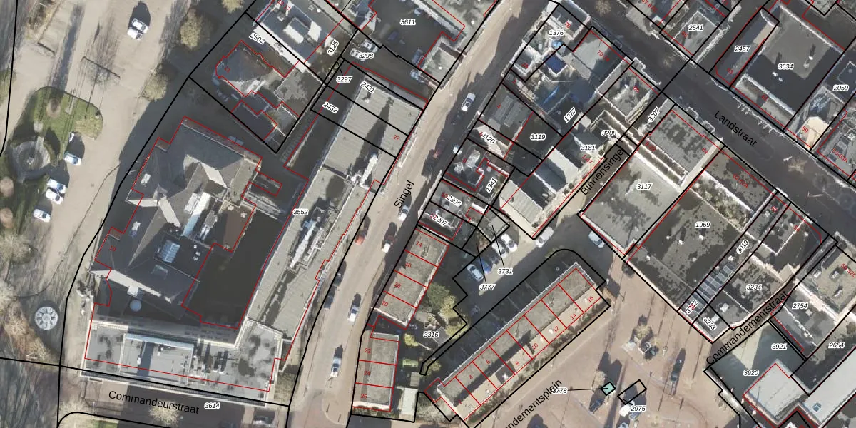 Het perceel waarop Singel 12 staat heeft een oppervlakte van 73 m². Dit is een klein perceel. De perceeloppervlakte wordt geregistreerd door het Kadaster. Gedetailleerde informatie over de maten van dit perceel kunt u vinden in het rapport Kadastrale kaart met maatvoering van Singel 12.