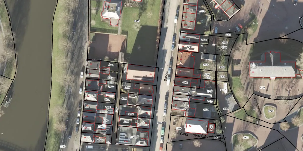 Het perceel waarop Singel 31 staat heeft een oppervlakte van 295 m². Dit is een middelgroot perceel. De perceeloppervlakte wordt geregistreerd door het Kadaster. Gedetailleerde informatie over de maten van dit perceel kunt u vinden in het rapport Kadastrale kaart met maatvoering van Singel 31.