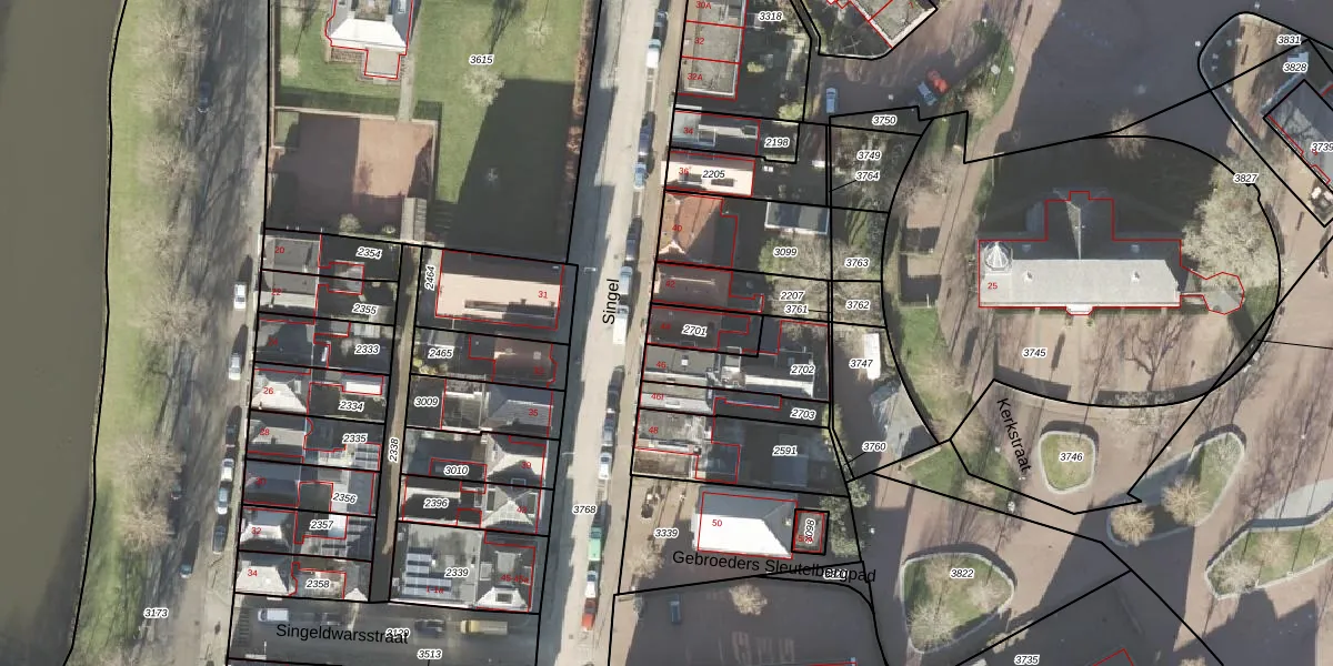 Gebruik de zoekbalk of klik op een perceel voor informatie over de adressen binnen dit perceel.