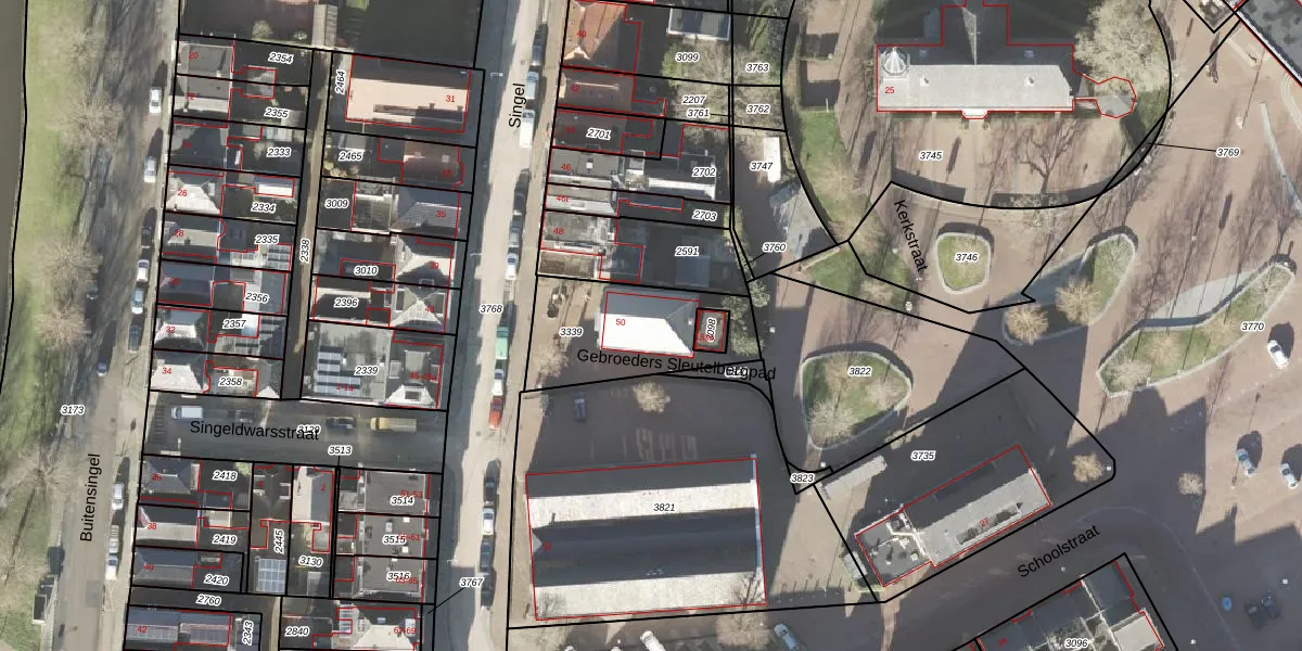 Het perceel waarop Singel 50 staat heeft een oppervlakte van 447 m². Dit is een groot perceel. De perceeloppervlakte wordt geregistreerd door het Kadaster. Gedetailleerde informatie over de maten van dit perceel kunt u vinden in het rapport Kadastrale kaart met maatvoering van Singel 50.