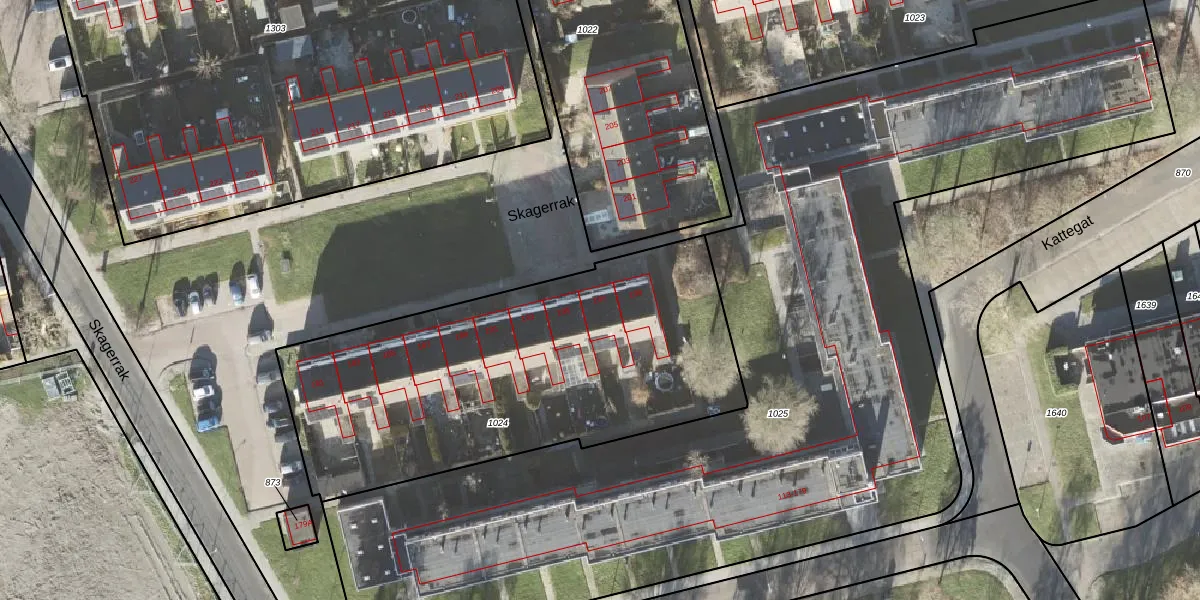 Het perceel waarop Skagerrak 197 staat heeft een oppervlakte van 2035 m². Dit is een zeer groot perceel. De perceeloppervlakte wordt geregistreerd door het Kadaster. Gedetailleerde informatie over de maten van dit perceel kunt u vinden in het rapport Kadastrale kaart met maatvoering van Skagerrak 197.