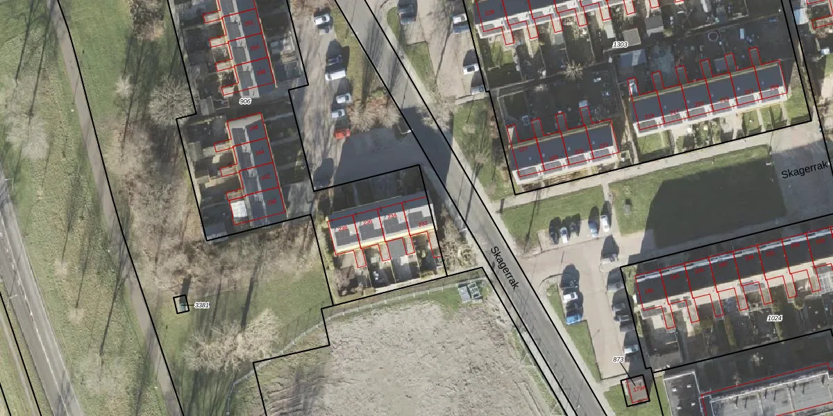 Het perceel waarop Skagerrak 232 staat heeft een oppervlakte van 3234 m². Dit is een zeer groot perceel. De perceeloppervlakte wordt geregistreerd door het Kadaster. Gedetailleerde informatie over de maten van dit perceel kunt u vinden in het rapport Kadastrale kaart met maatvoering van Skagerrak 232.