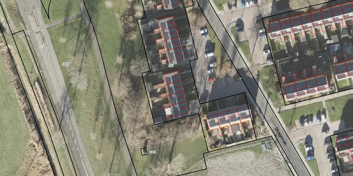 Het perceel waarop Skagerrak 244 staat heeft een oppervlakte van 3234 m². Dit is een zeer groot perceel. De perceeloppervlakte wordt geregistreerd door het Kadaster. Gedetailleerde informatie over de maten van dit perceel kunt u vinden in het rapport Kadastrale kaart met maatvoering van Skagerrak 244.