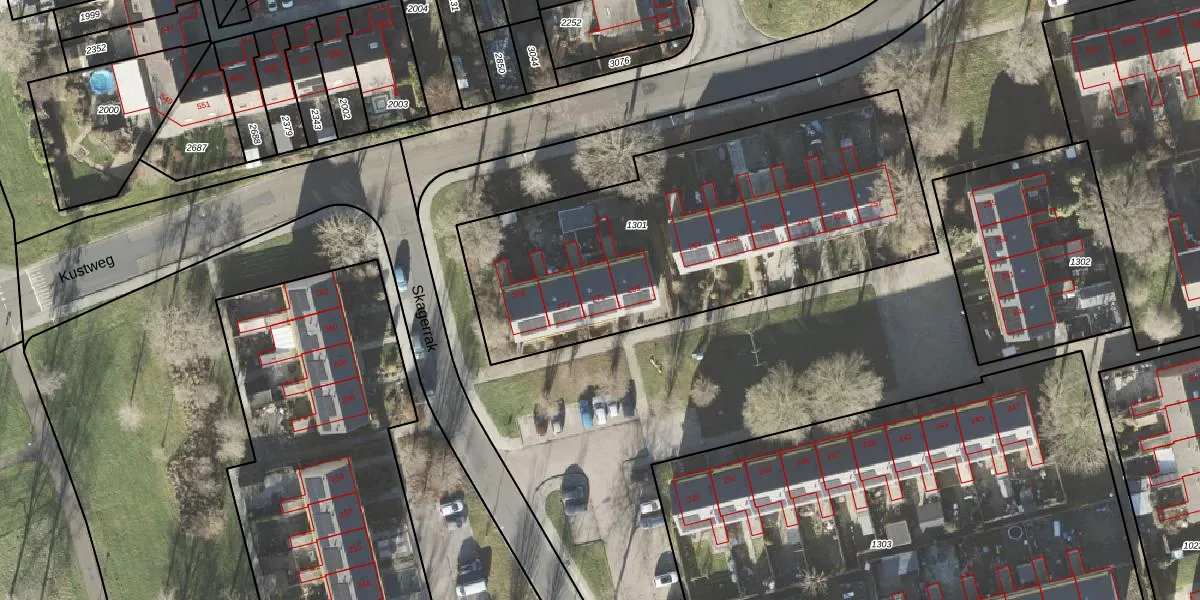 Het perceel waarop Skagerrak 271 staat heeft een oppervlakte van 2027 m². Dit is een zeer groot perceel. De perceeloppervlakte wordt geregistreerd door het Kadaster. Gedetailleerde informatie over de maten van dit perceel kunt u vinden in het rapport Kadastrale kaart met maatvoering van Skagerrak 271.
