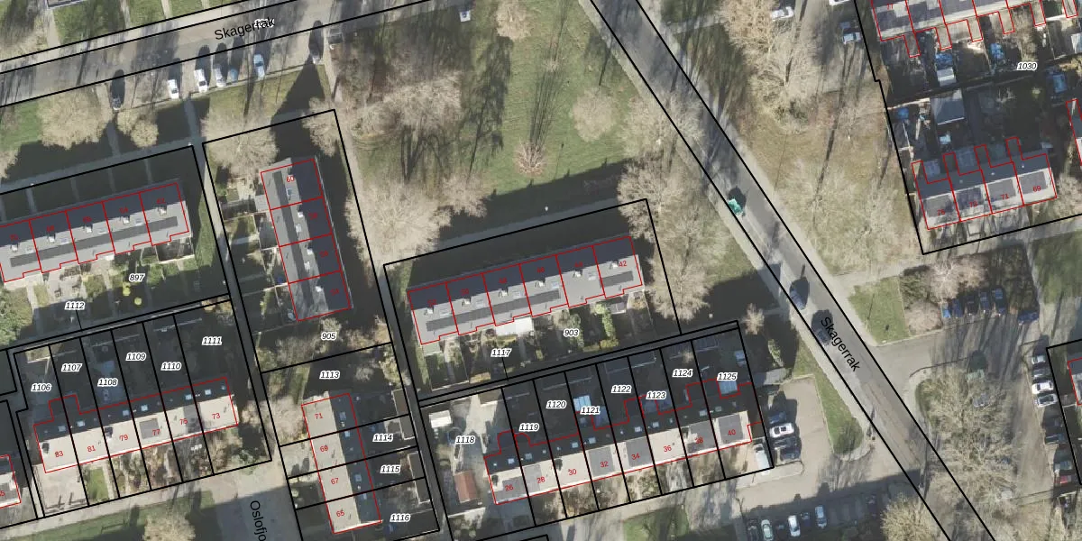 Het perceel waarop Skagerrak 46 staat heeft een oppervlakte van 1300 m². Dit is een zeer groot perceel. De perceeloppervlakte wordt geregistreerd door het Kadaster. Gedetailleerde informatie over de maten van dit perceel kunt u vinden in het rapport Kadastrale kaart met maatvoering van Skagerrak 46.