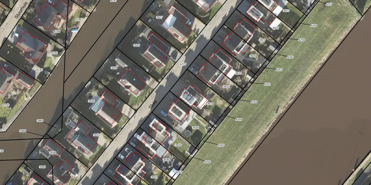 Het perceel waarop Sluis 16 staat heeft een oppervlakte van 455 m². Dit is een groot perceel. De perceeloppervlakte wordt geregistreerd door het Kadaster. Gedetailleerde informatie over de maten van dit perceel kunt u vinden in het rapport Kadastrale kaart met maatvoering van Sluis 16.
