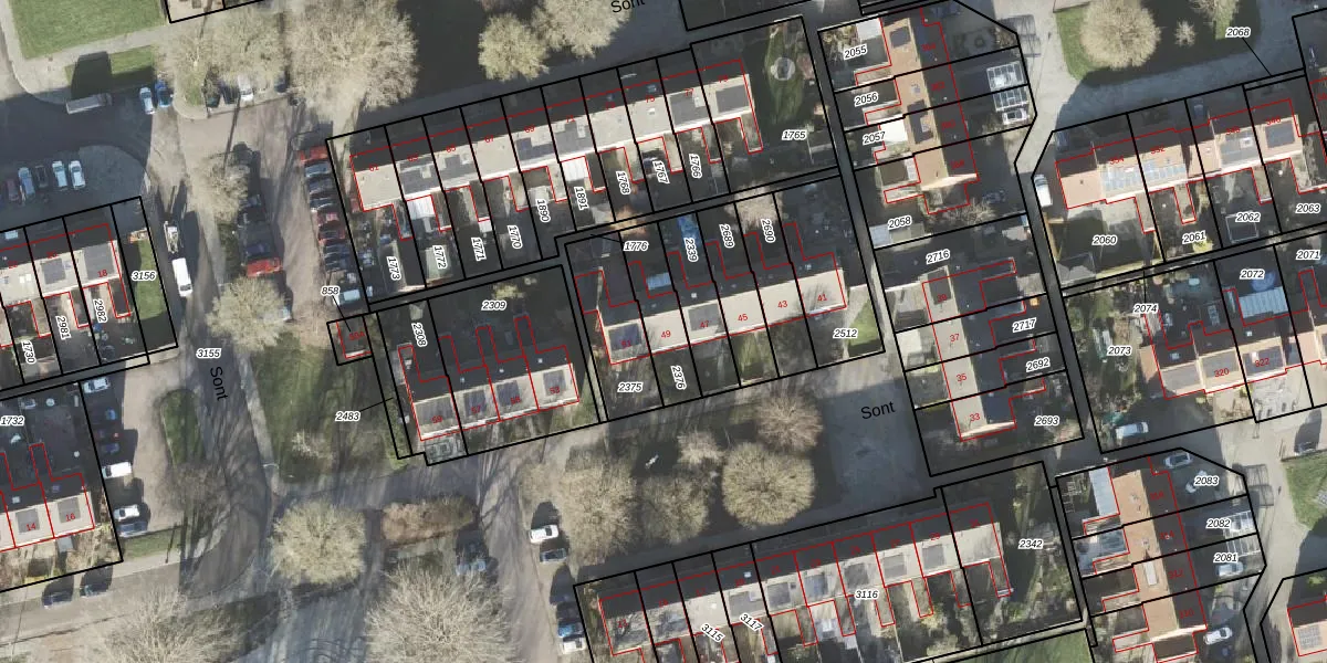 Het perceel waarop Sont 49 staat heeft een oppervlakte van 165 m². Dit is een middelgroot perceel. De perceeloppervlakte wordt geregistreerd door het Kadaster. Gedetailleerde informatie over de maten van dit perceel kunt u vinden in het rapport Kadastrale kaart met maatvoering van Sont 49.