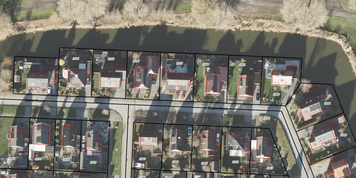 Het perceel waarop Steenhuis 9 staat heeft een oppervlakte van 514 m². Dit is een groot perceel. De perceeloppervlakte wordt geregistreerd door het Kadaster. Gedetailleerde informatie over de maten van dit perceel kunt u vinden in het rapport Kadastrale kaart met maatvoering van Steenhuis 9.