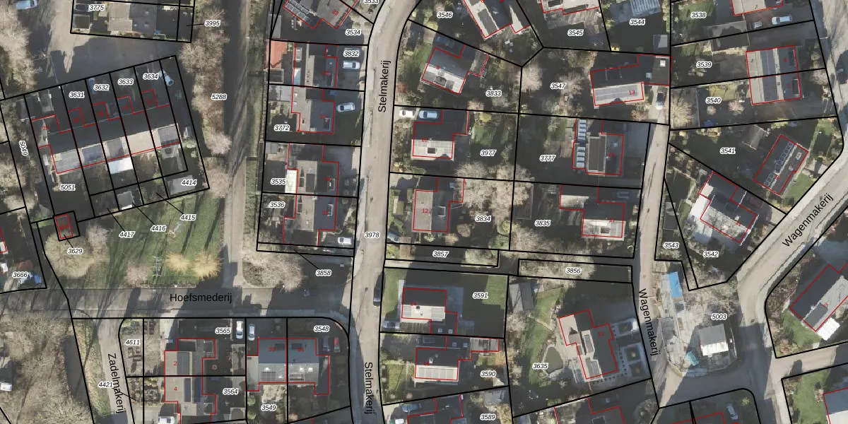 Gebruik de zoekbalk of klik op een perceel voor informatie over de adressen binnen dit perceel.