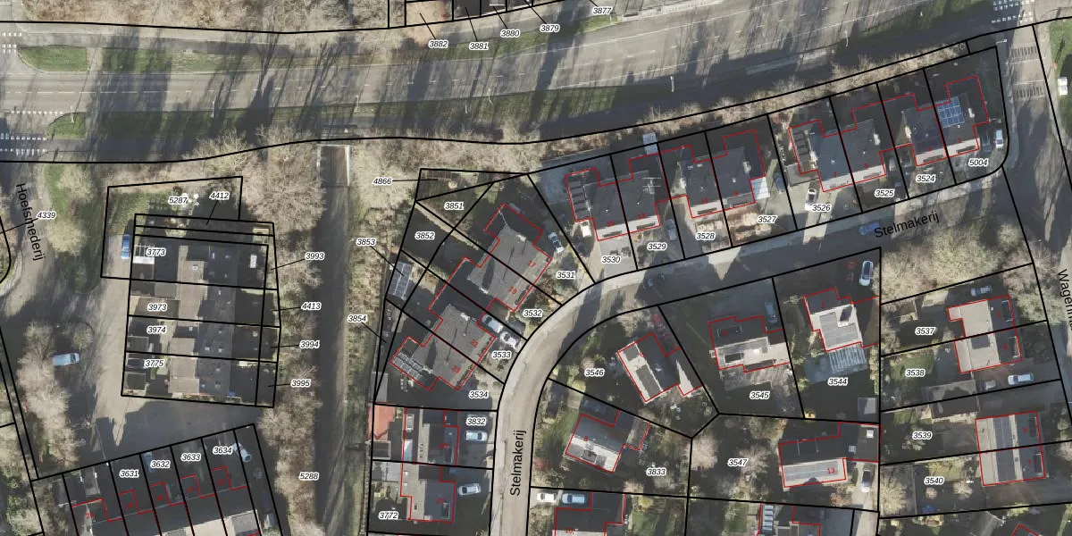 Het perceel waarop Stelmakerij 17 staat heeft een oppervlakte van 307 m². Dit is een groot perceel. De perceeloppervlakte wordt geregistreerd door het Kadaster. Gedetailleerde informatie over de maten van dit perceel kunt u vinden in het rapport Kadastrale kaart met maatvoering van Stelmakerij 17.