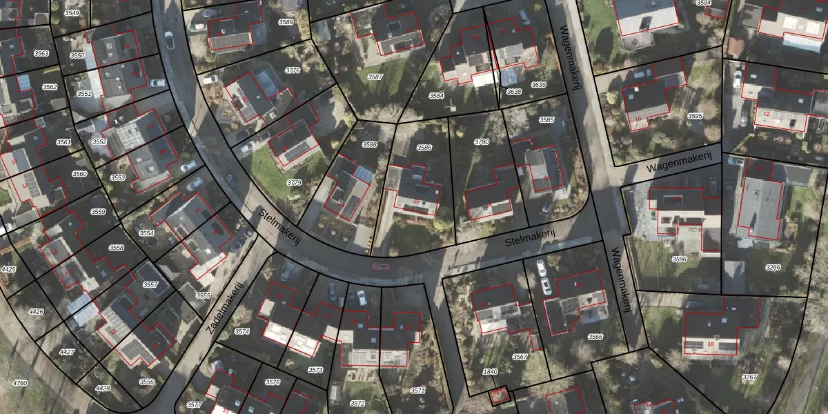 Gebruik de zoekbalk of klik op een perceel voor informatie over de adressen binnen dit perceel.