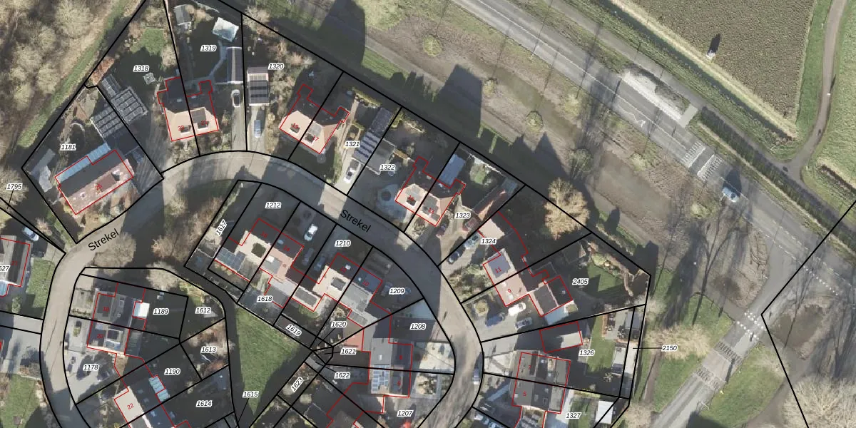 Het perceel waarop Strekel 13 staat heeft een oppervlakte van 385 m². Dit is een groot perceel. De perceeloppervlakte wordt geregistreerd door het Kadaster. Gedetailleerde informatie over de maten van dit perceel kunt u vinden in het rapport Kadastrale kaart met maatvoering van Strekel 13.