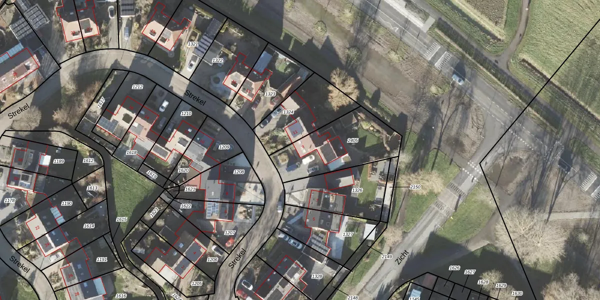 Het perceel waarop Strekel 9 staat heeft een oppervlakte van 607 m². Dit is een groot perceel. De perceeloppervlakte wordt geregistreerd door het Kadaster. Gedetailleerde informatie over de maten van dit perceel kunt u vinden in het rapport Kadastrale kaart met maatvoering van Strekel 9.