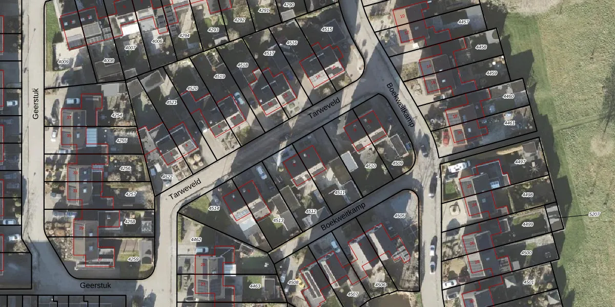 Gebruik de zoekbalk of klik op een perceel voor informatie over de adressen binnen dit perceel.