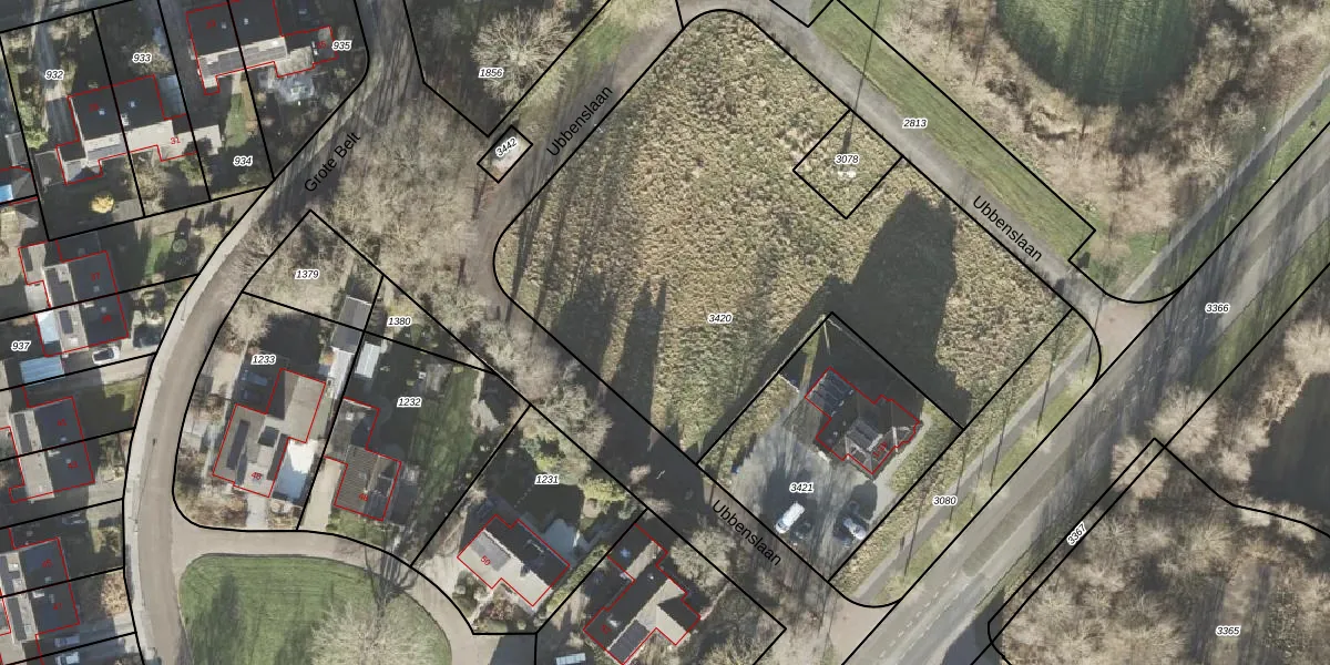 Het perceel waarop Ubbenslaan 3 staat heeft een oppervlakte van 2940 m². Dit is een zeer groot perceel. De perceeloppervlakte wordt geregistreerd door het Kadaster. Gedetailleerde informatie over de maten van dit perceel kunt u vinden in het rapport Kadastrale kaart met maatvoering van Ubbenslaan 3.