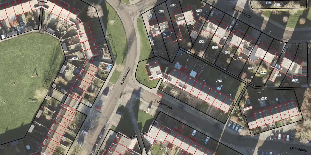 Het perceel waarop Uilenhoek 2 staat heeft een oppervlakte van 1733 m². Dit is een zeer groot perceel. De perceeloppervlakte wordt geregistreerd door het Kadaster. Gedetailleerde informatie over de maten van dit perceel kunt u vinden in het rapport Kadastrale kaart met maatvoering van Uilenhoek 2.