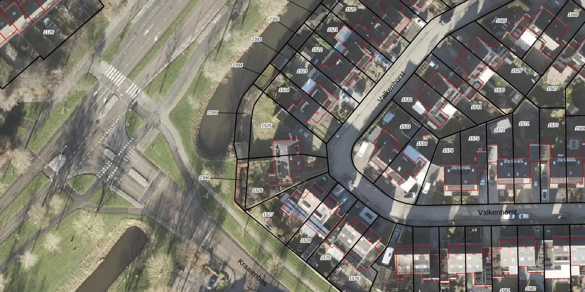 Gebruik de zoekbalk of klik op een perceel voor informatie over de adressen binnen dit perceel.