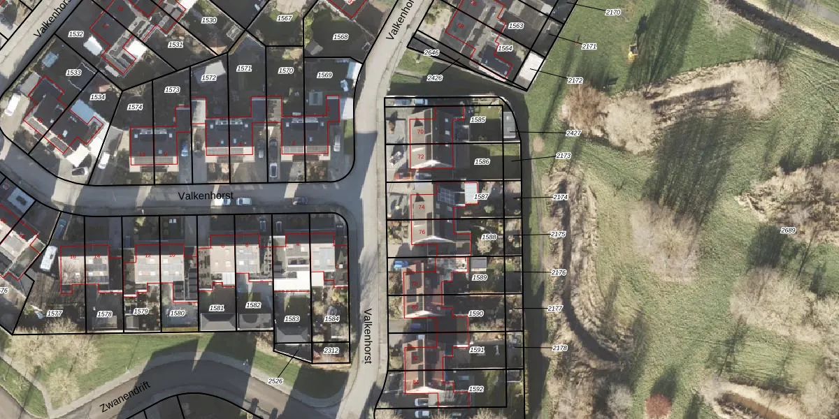 Valkenhorst 74 is gelegen op kadastraal perceel DZL01K1587. Deze kadastrale aanduiding is uniek en wordt gebruikt door het Kadaster om eigendomsrechten en andere zakelijke rechten vast te leggen. Het perceel maakt onderdeel uit van de kadastrale gemeente Delfzijl.