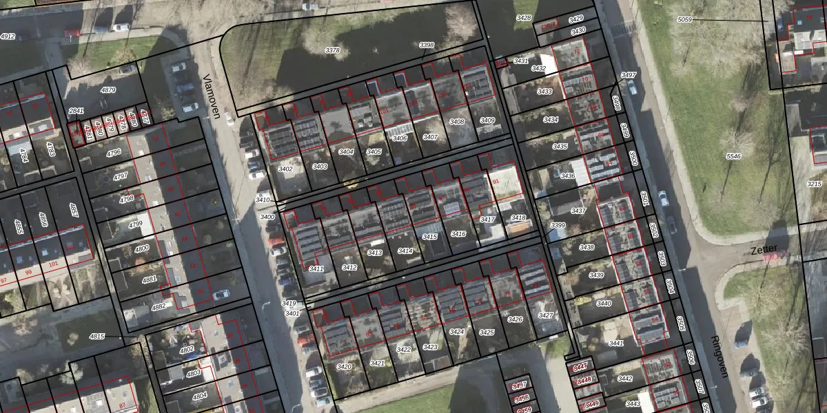 Gebruik de zoekbalk of klik op een perceel voor informatie over de adressen binnen dit perceel.