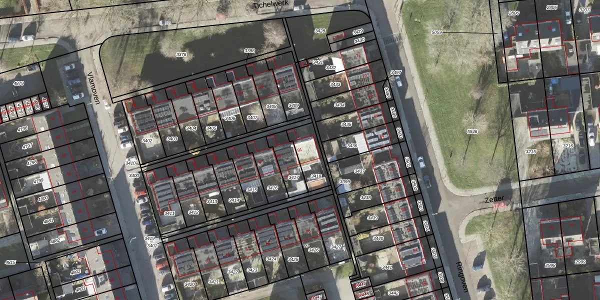 Gebruik de zoekbalk of klik op een perceel voor informatie over de adressen binnen dit perceel.