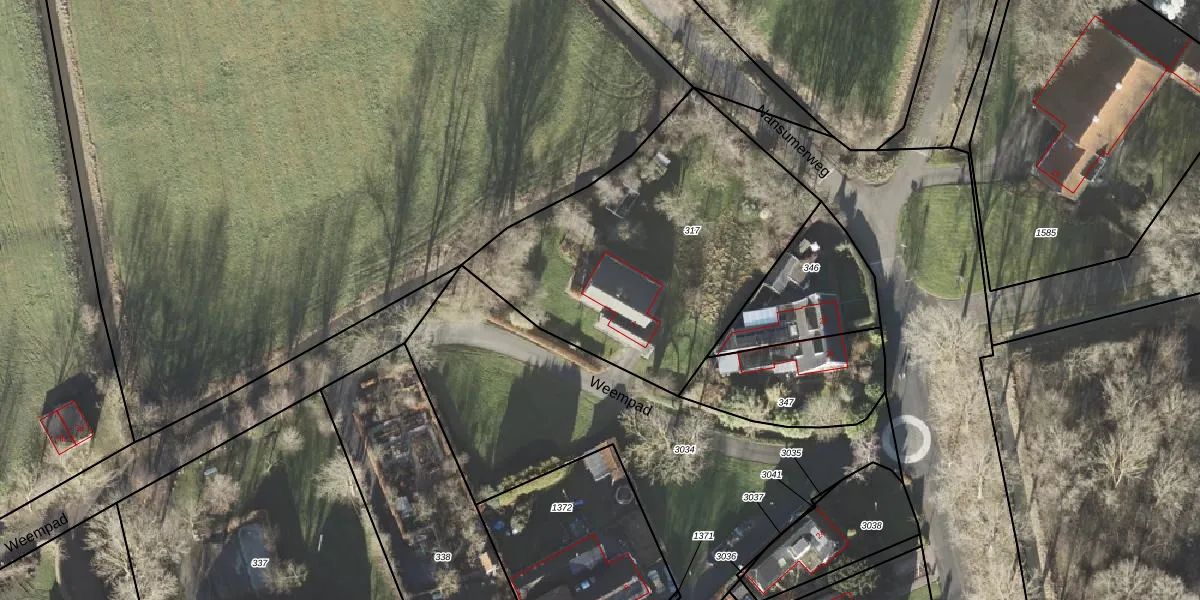 Het perceel waarop Weempad 1 staat heeft een oppervlakte van 1500 m². Dit is een zeer groot perceel. De perceeloppervlakte wordt geregistreerd door het Kadaster. Gedetailleerde informatie over de maten van dit perceel kunt u vinden in het rapport Kadastrale kaart met maatvoering van Weempad 1.