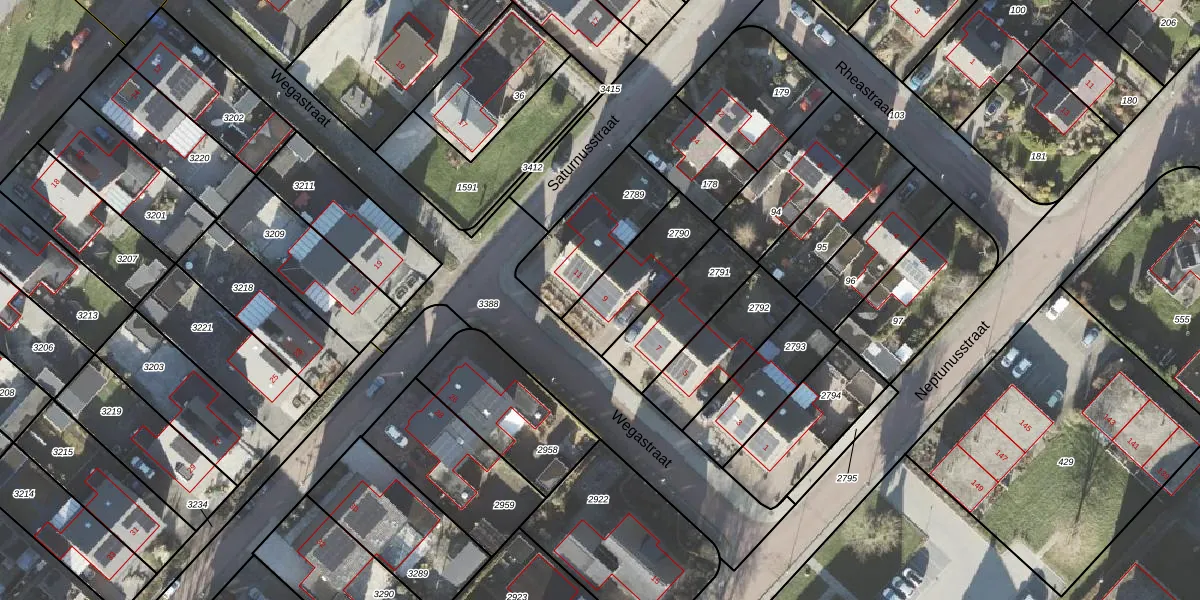 Gebruik de zoekbalk of klik op een perceel voor informatie over de adressen binnen dit perceel.