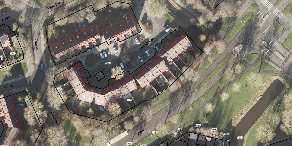 Het perceel waarop Wendakker 21 staat heeft een oppervlakte van 2640 m². Dit is een zeer groot perceel. De perceeloppervlakte wordt geregistreerd door het Kadaster. Gedetailleerde informatie over de maten van dit perceel kunt u vinden in het rapport Kadastrale kaart met maatvoering van Wendakker 21.