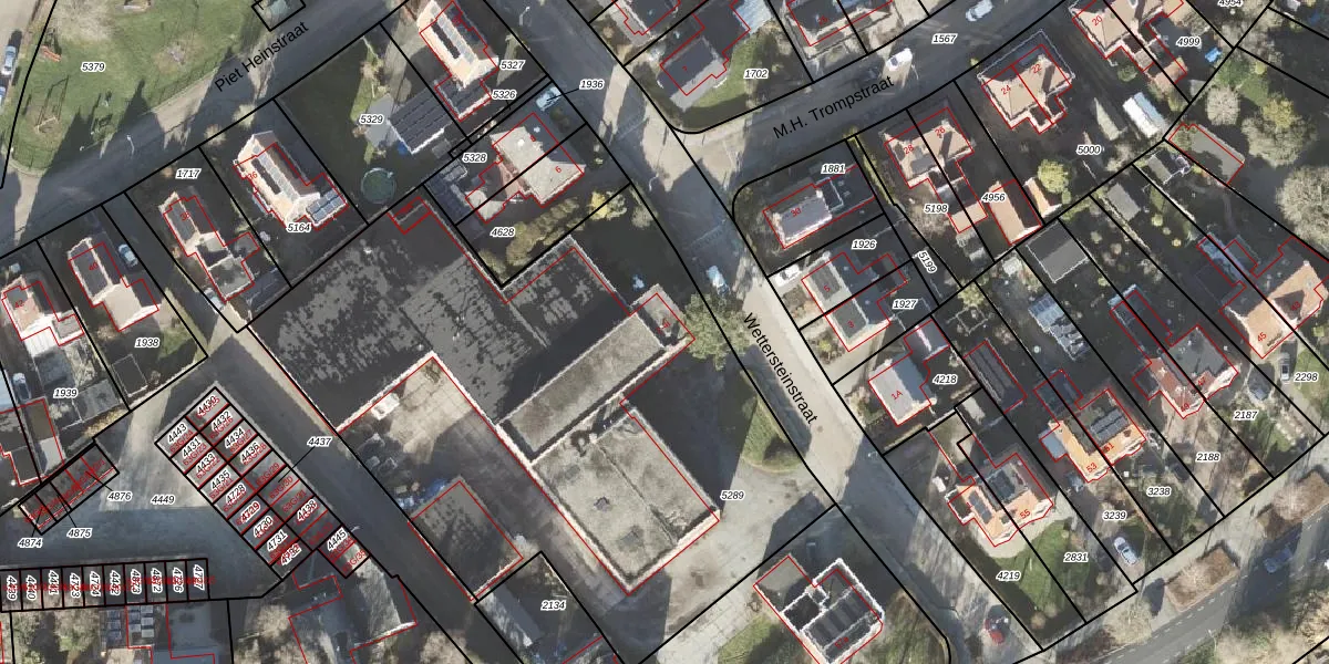 Het perceel waarop Wettersteinstraat 4-i staat heeft een oppervlakte van 3457 m². Dit is een zeer groot perceel. De perceeloppervlakte wordt geregistreerd door het Kadaster. Gedetailleerde informatie over de maten van dit perceel kunt u vinden in het rapport Kadastrale kaart met maatvoering van Wettersteinstraat 4-i.