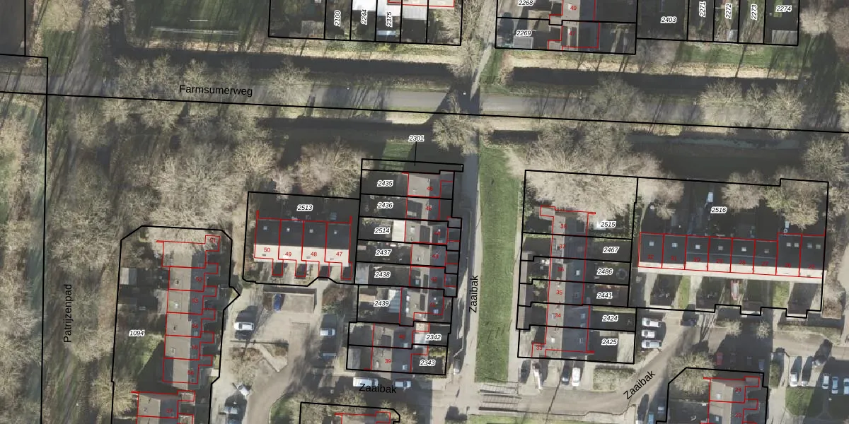 Gebruik de zoekbalk of klik op een perceel voor informatie over de adressen binnen dit perceel.