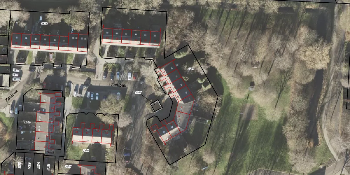 Het perceel waarop Zaaibak 6 staat heeft een oppervlakte van 2695 m². Dit is een zeer groot perceel. De perceeloppervlakte wordt geregistreerd door het Kadaster. Gedetailleerde informatie over de maten van dit perceel kunt u vinden in het rapport Kadastrale kaart met maatvoering van Zaaibak 6.