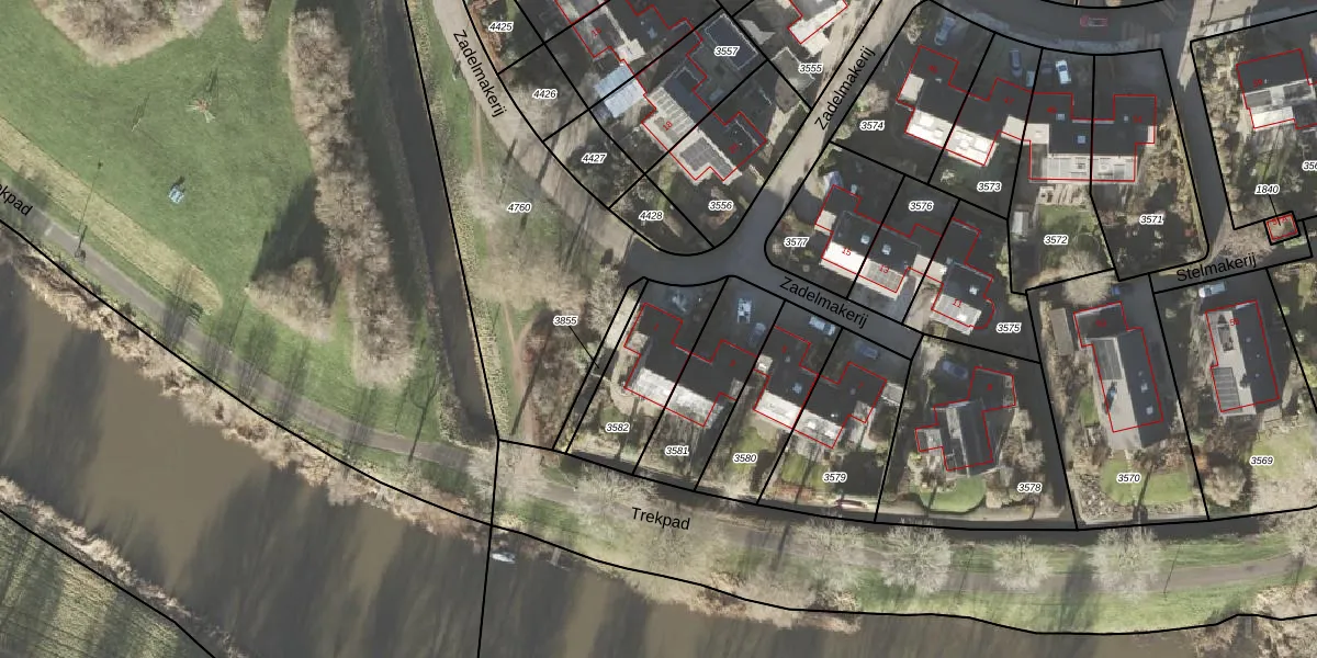 Het perceel waarop Zadelmakerij 1 staat heeft een oppervlakte van 318 m². Dit is een groot perceel. De perceeloppervlakte wordt geregistreerd door het Kadaster. Gedetailleerde informatie over de maten van dit perceel kunt u vinden in het rapport Kadastrale kaart met maatvoering van Zadelmakerij 1.