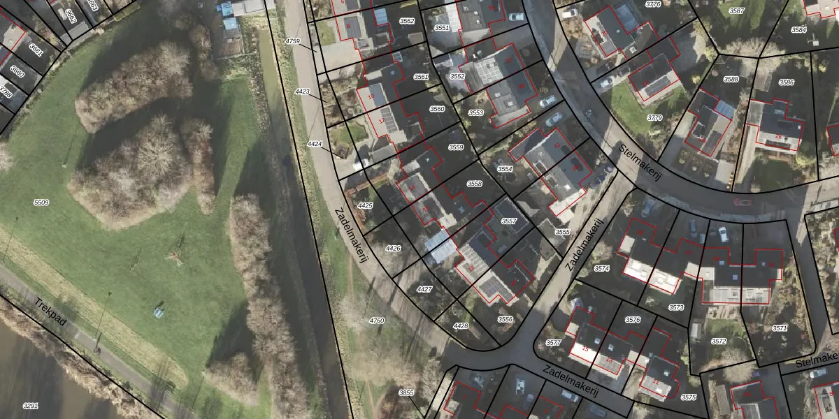Het perceel waarop Zadelmakerij 16 staat heeft een oppervlakte van 286 m². Dit is een middelgroot perceel. De perceeloppervlakte wordt geregistreerd door het Kadaster. Gedetailleerde informatie over de maten van dit perceel kunt u vinden in het rapport Kadastrale kaart met maatvoering van Zadelmakerij 16.