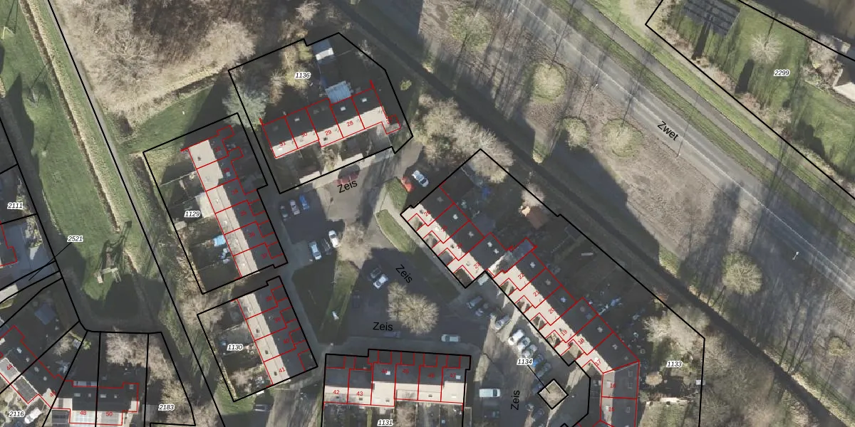 Het perceel waarop Zeis 26 staat heeft een oppervlakte van 3230 m². Dit is een zeer groot perceel. De perceeloppervlakte wordt geregistreerd door het Kadaster. Gedetailleerde informatie over de maten van dit perceel kunt u vinden in het rapport Kadastrale kaart met maatvoering van Zeis 26.