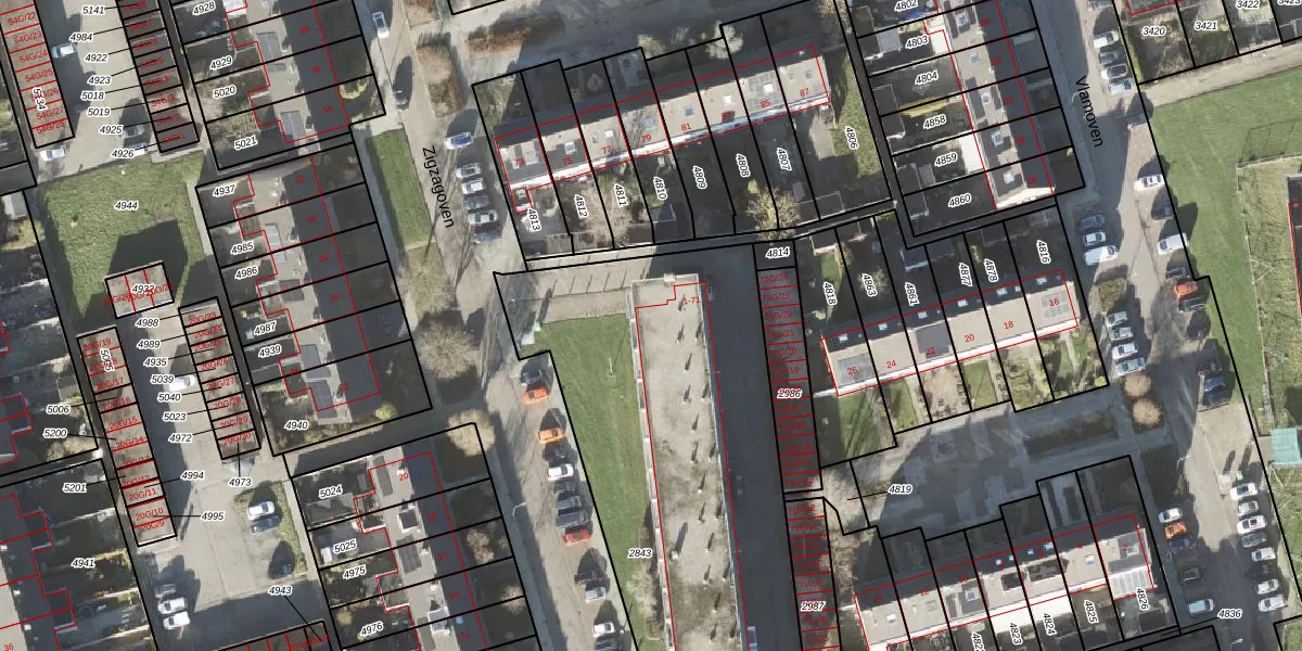 Zigzagoven 1-G-18 is gelegen op kadastraal perceel DZL01B2843. Deze kadastrale aanduiding is uniek en wordt gebruikt door het Kadaster om eigendomsrechten en andere zakelijke rechten vast te leggen. Het perceel maakt onderdeel uit van de kadastrale gemeente Delfzijl.