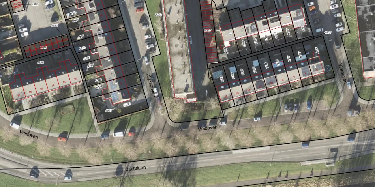 Het perceel waarop Zigzagoven 37 staat heeft een oppervlakte van 3070 m². Dit is een zeer groot perceel. De perceeloppervlakte wordt geregistreerd door het Kadaster. Gedetailleerde informatie over de maten van dit perceel kunt u vinden in het rapport Kadastrale kaart met maatvoering van Zigzagoven 37.