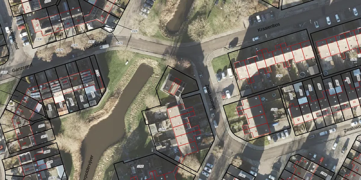 Het perceel waarop Zwaluwoever 1 staat heeft een oppervlakte van 1312 m². Dit is een zeer groot perceel. De perceeloppervlakte wordt geregistreerd door het Kadaster. Gedetailleerde informatie over de maten van dit perceel kunt u vinden in het rapport Kadastrale kaart met maatvoering van Zwaluwoever 1.